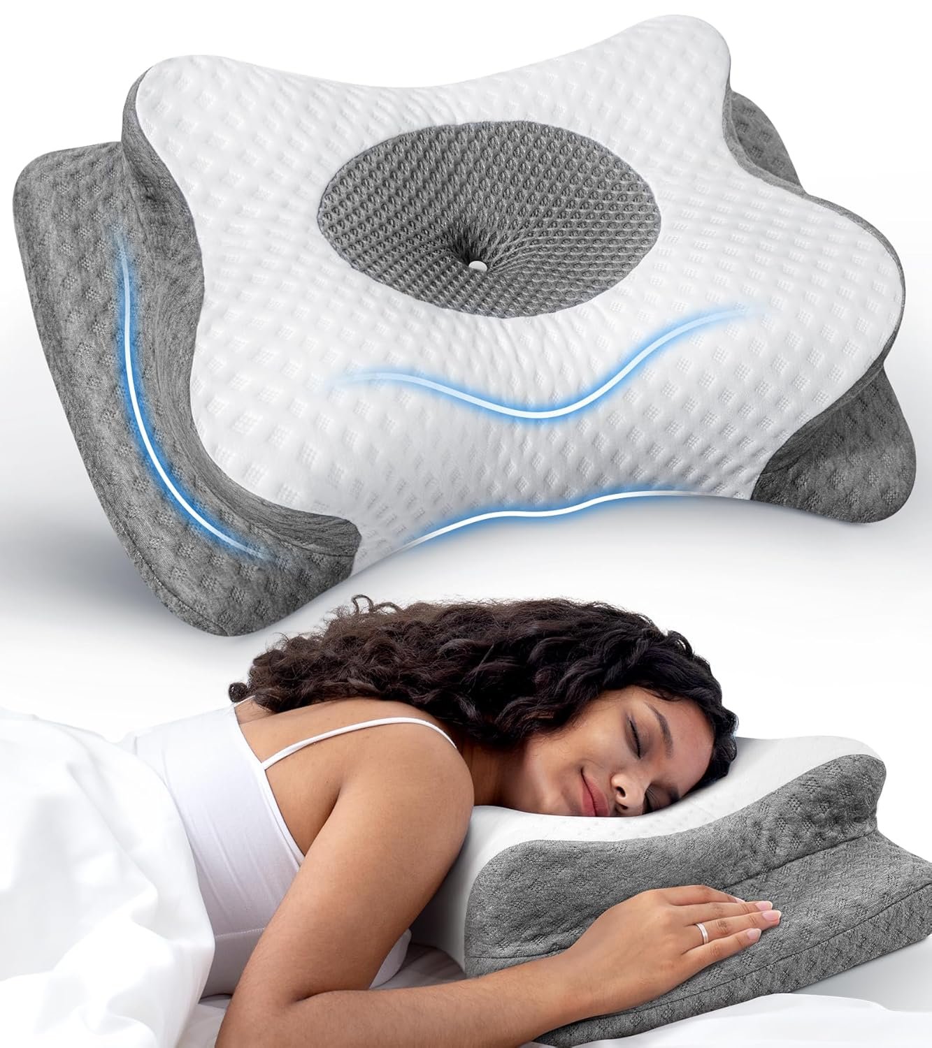 • VERSATILE SLEEP HAVEN! Unveiling 5 dynamic sleep zones which cater to soothe specific pressure points, our cervical pillow ensures comprehensive support no matter how you slumber. Experience profound head wrapping with the innovative hollow perforated design. With an extended armrest area, you’re free to position your hands as you please. The butterfly-shaped design supports cozy side sleeping in both directions. A larger side area cradles like a loving embrace. Dive into unparalleled sleep!